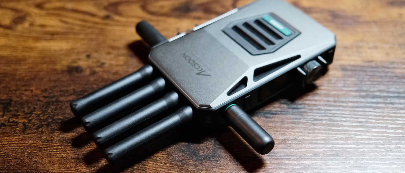 The design will be familiar to anybody who has used this type of device before. An array of antennas, simple controls and options for mounting and power. On that matter, there are threaded holes on the bottom side to attach to your rig. Accsoon also has a v-mount adapter as an optional extra which might be worth exploring, if you choose that as your power source.