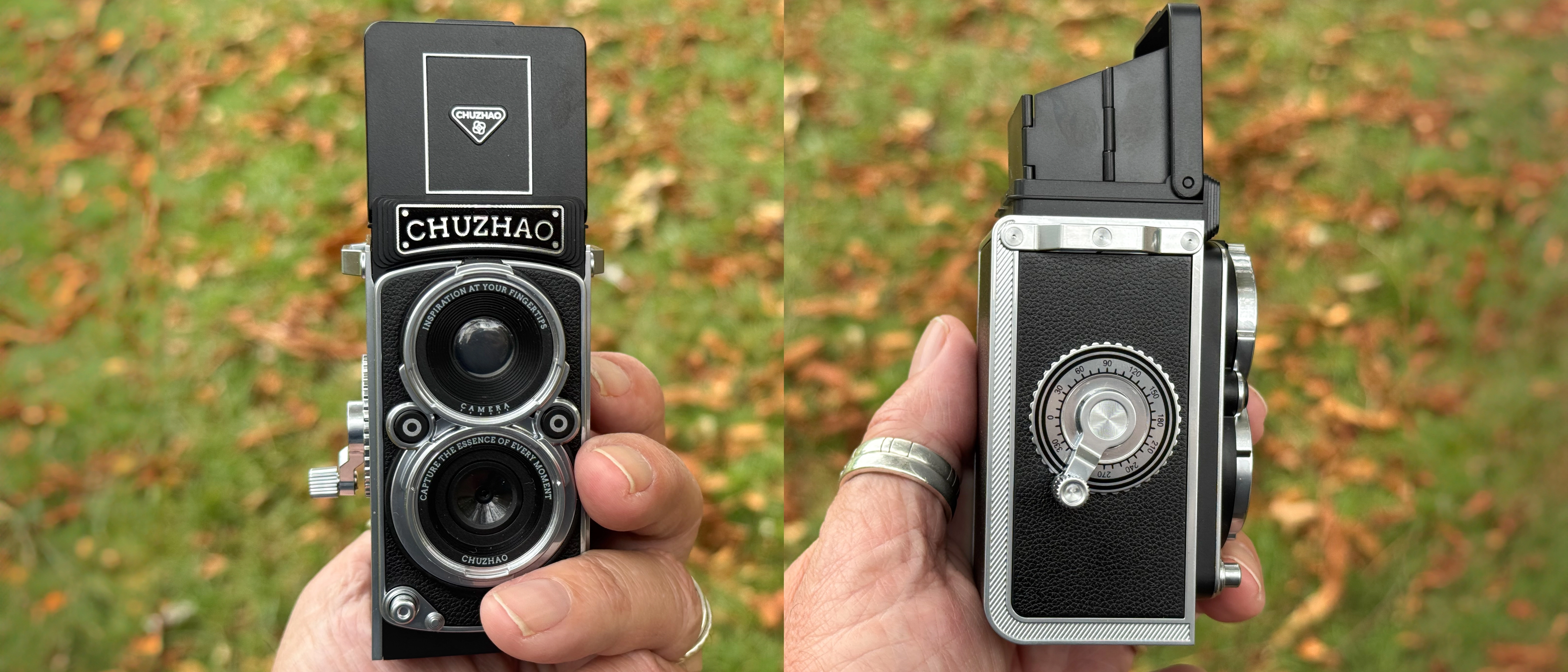 The Chuzhao sells consistently at under $50 / £40, and offers for significantly less. Calling this a toy is a bit disingenuous – it is a full-working scale model of a twin-lens reflex camera (a type of medium-format film camera that was popular with working pros in the 1950s and 60s). As such, I think of this as an executive toy – the sort of object you leave on your desk or bookshelf, for people to admire and play with.