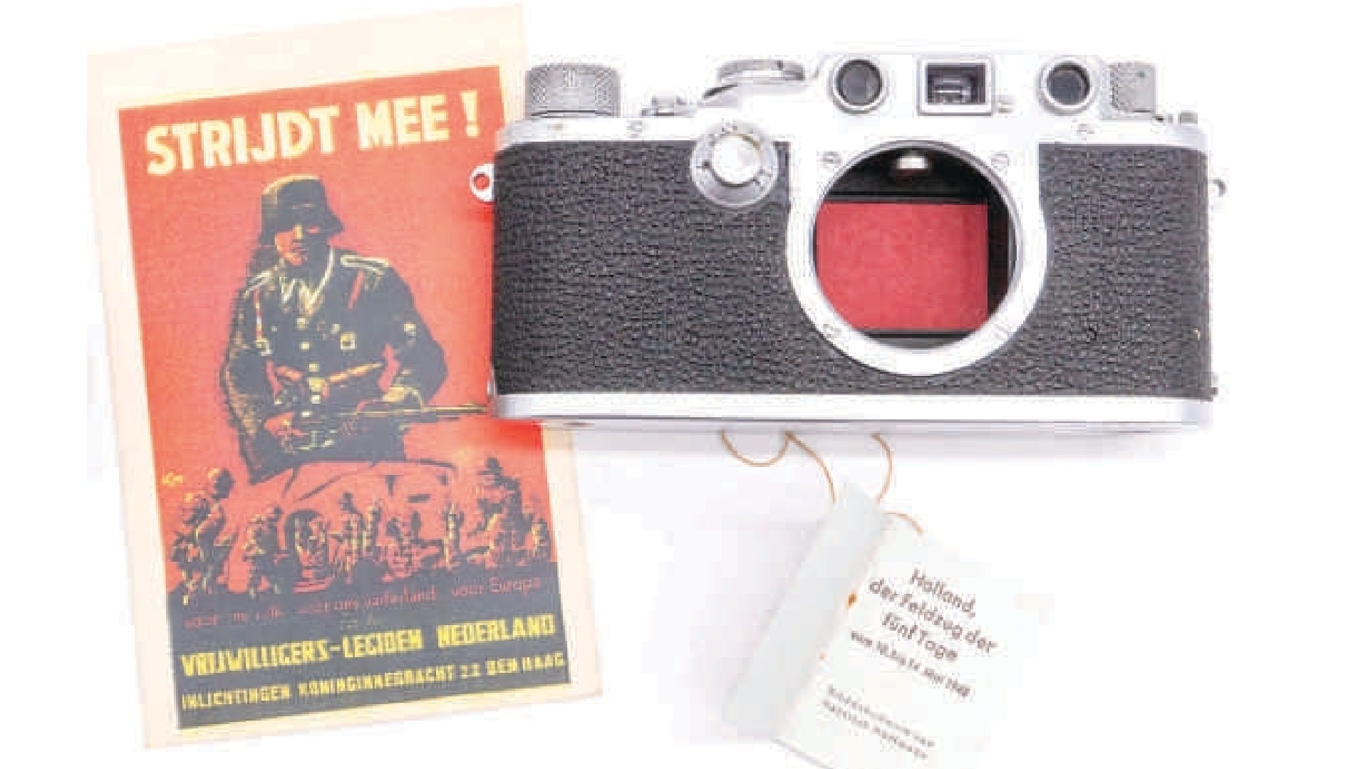 A significant portion of the catalogue, meanwhile, documents a darker chapter in photographic history. Dozens of cameras and lenses bear engravings like "Luftwaffen-Eigentum" (German Air Force property) or "Wehrmacht Heer" (Army Forces), having served in World War Two.