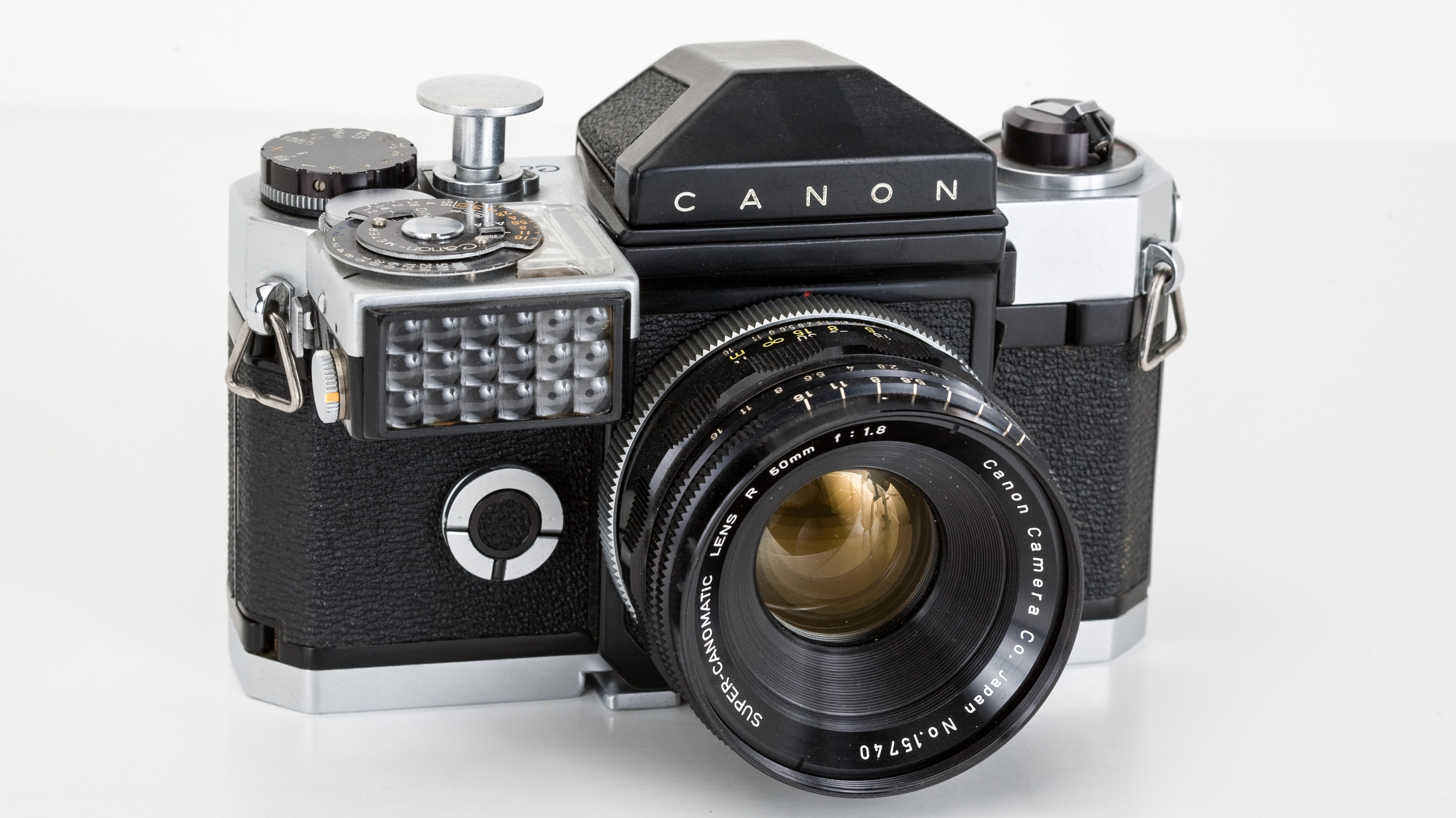 Canon’s first SLR, the Canonflex, was introduced in May 1959, just one month before the introduction of the legendary Nikon F at a price of ¥59,500 (roughly US$165 at the time or $1,700 today).