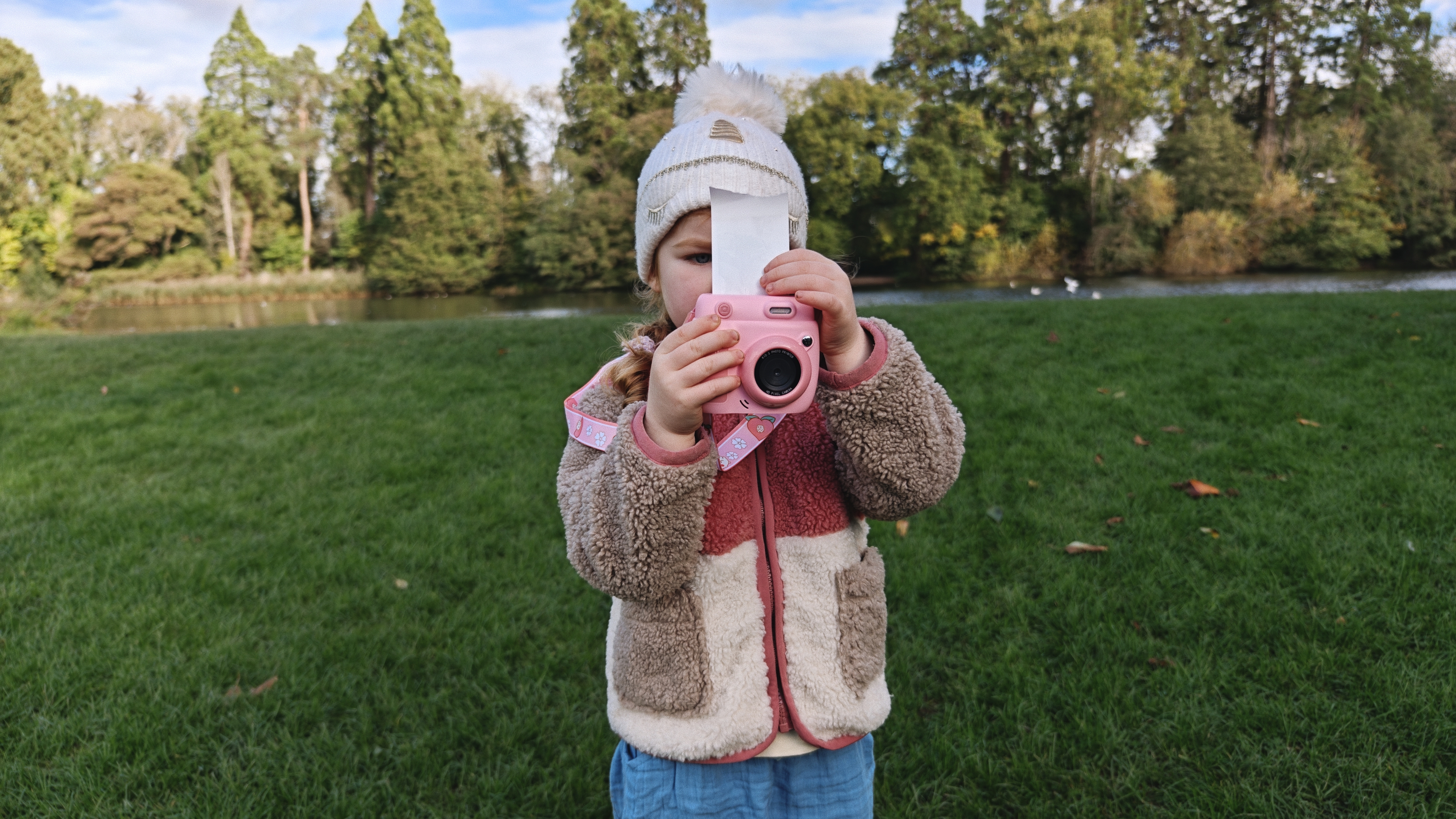 I took this camera on a local park and duck pond trip with my three-and-a-half-year-old daughter. She’s a budding little photographer, and I was curious to see how she’d respond to the combination of digital shooting and instant printing.