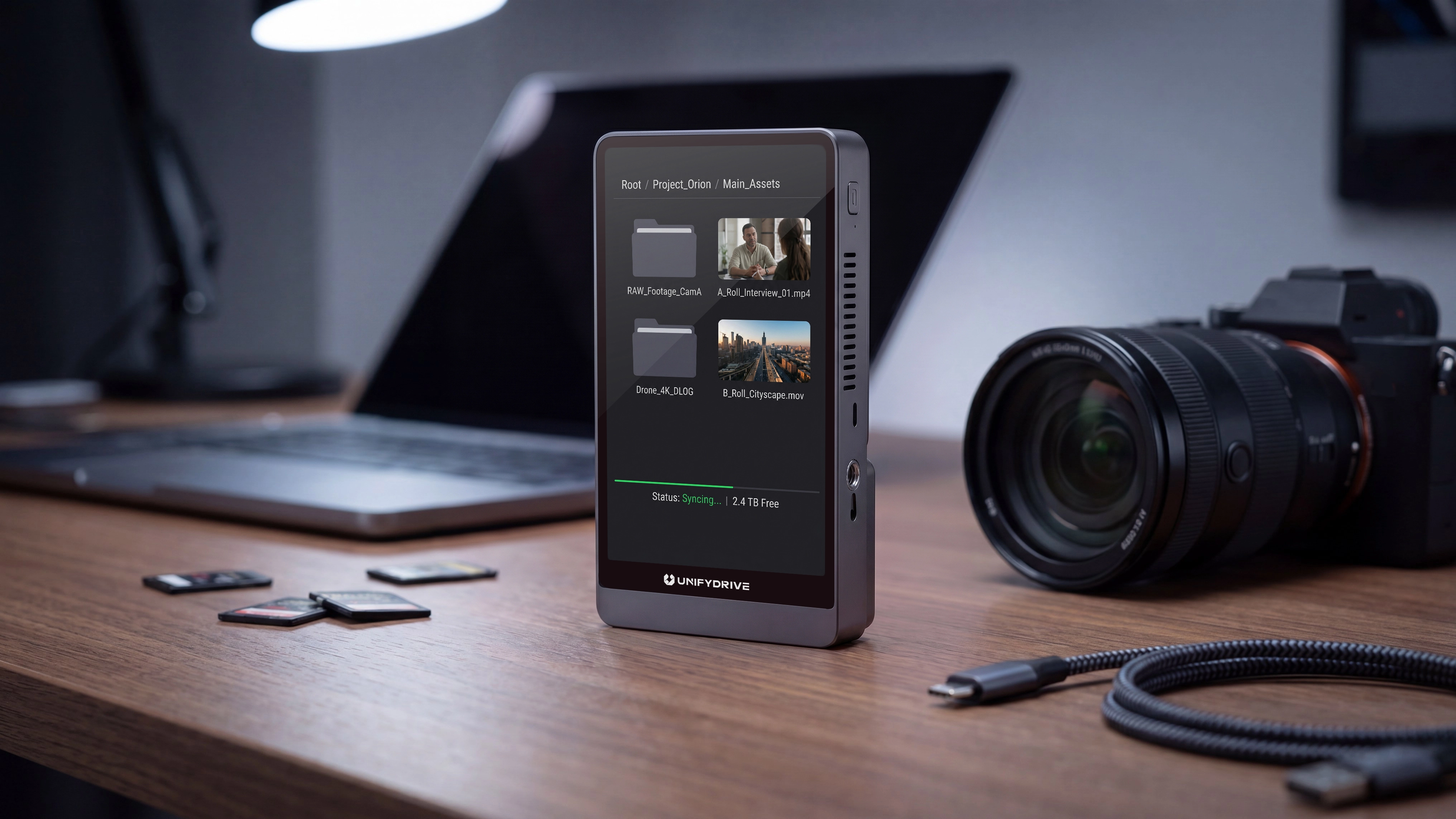 The UnifyDrive PixelMob, unveiled over the weekend at the NAB Show, is at its core a NVMe SSD storage drive with a built-in touchscreen and memory card slots. That combination allows creators to create backup files on-site.