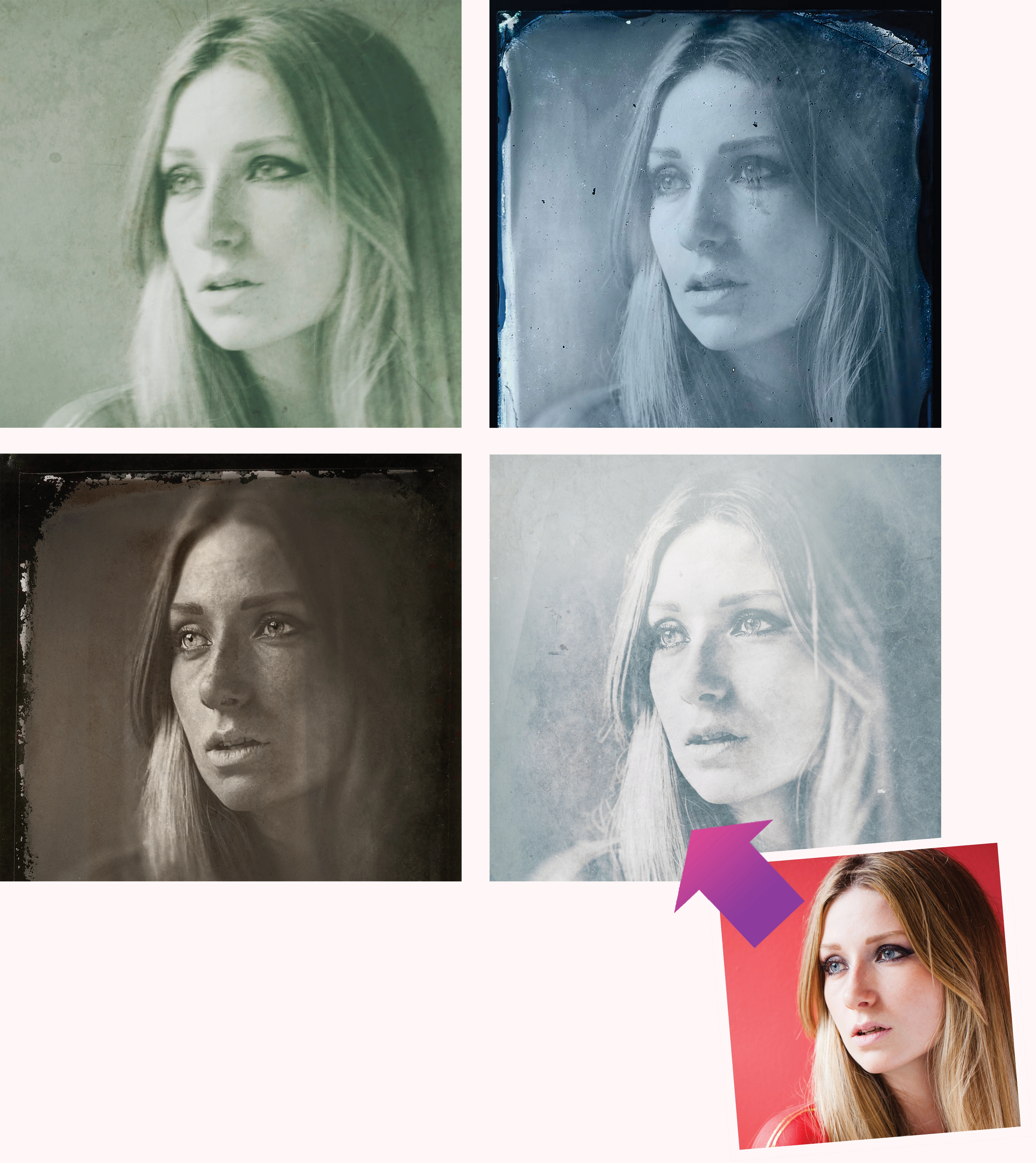 Available for free as part of Google’s Nik Collection, Analog Efex is a great plug-in for retro effects. Download it from www.google.com/nikcollection and install it, then go to Filter>Nik Collection>Analog Efex. Here we first applied a Wet Plate preset, then a Classic Camera preset. We finished by adding texture03.jpg and set this layer’s blending mode to Screen, with opacity set to 77%.