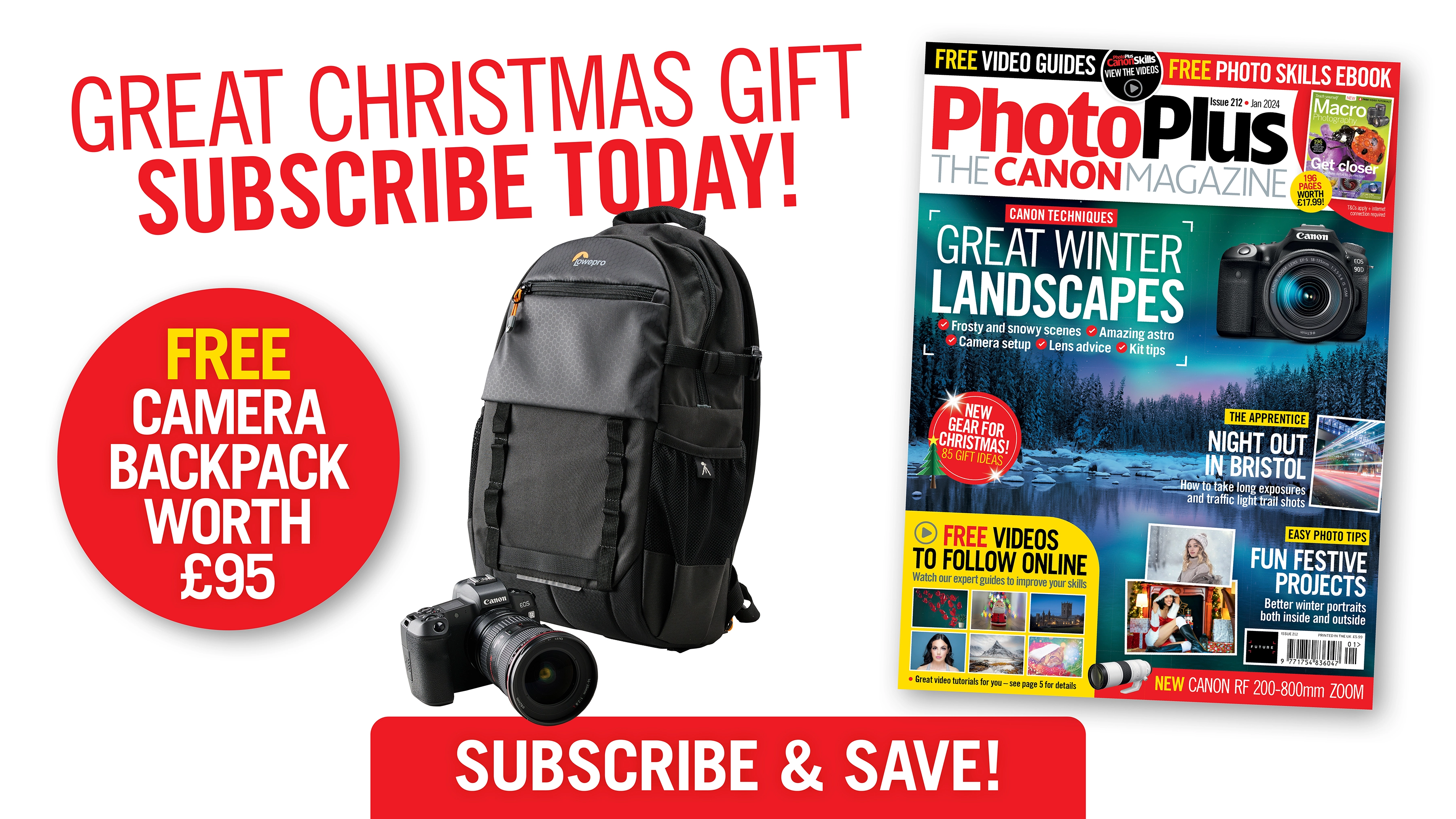 If you’re not a PhotoPlus: The Canon Magazine subscriber already CLICK HERE to join our Canon crew and get your free Lowepro camera backpack worth £95!*This also makes sure your copy is delivered to your door every month.