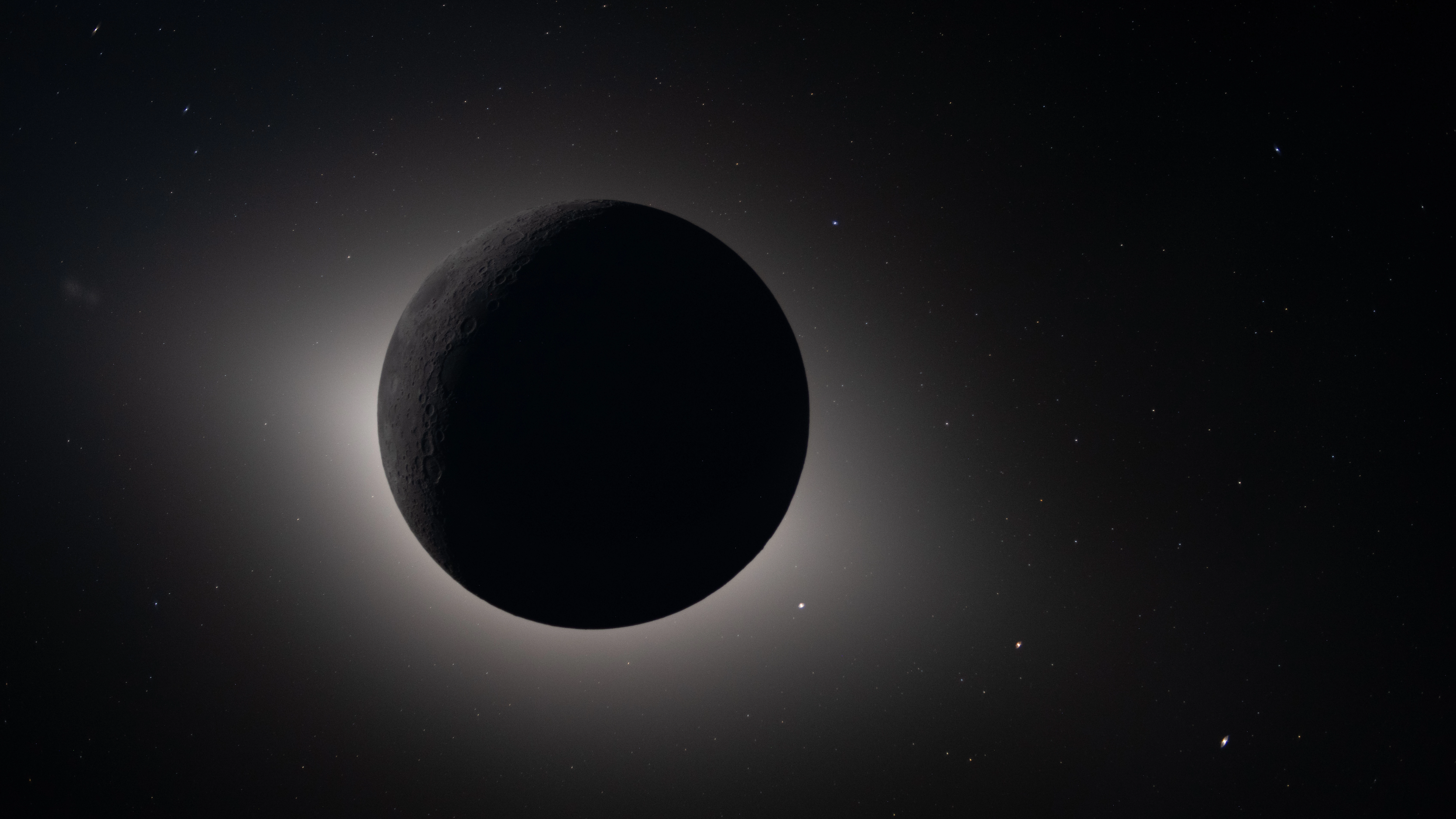 Getting in a little closer, this shot taken with the Nikon D5 and 80-400mm lens – the same camera-lens combo that just recreated the iconic 1968 Earthrise photo with a 2026 Earthset image – shows not just the eclipse, but Jupiter in the distance. Like in the shot from the Z9, reflected light from Earth offers some slight illumination to the Moon’s surface details.