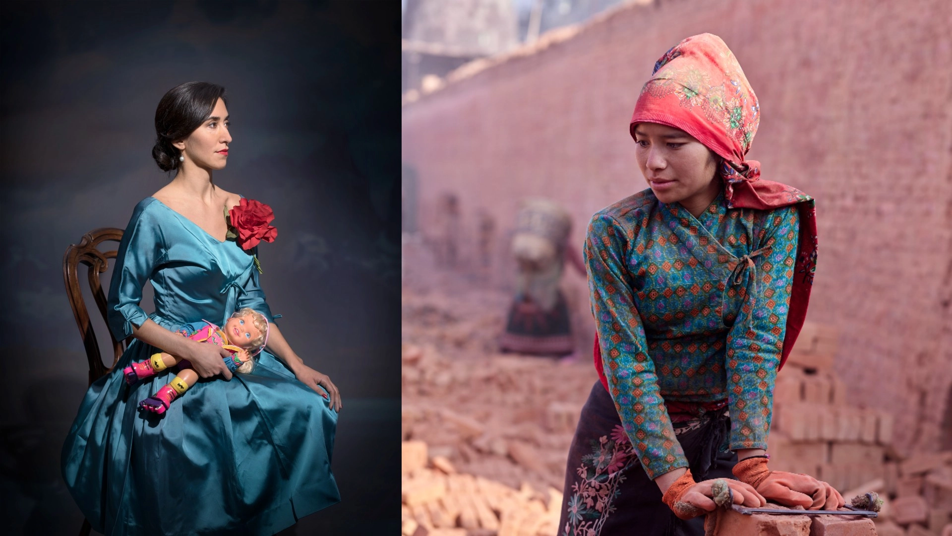 In Ancestral Heritage, a grandmother works at her needlecraft on a bed while a small girl reads beside her, surrounded by patterned rugs and floral curtains. The color palette is rich and lived-in, the light flattering without being falsified. This is documentary photography at its most generous.