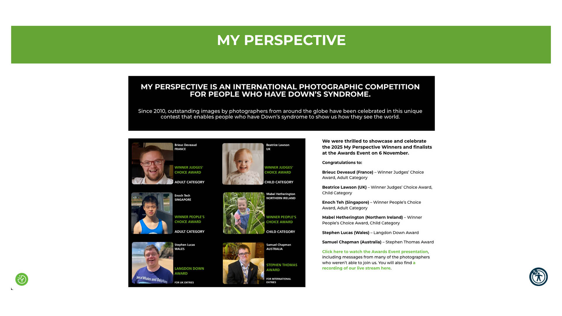This 15th year of the awards saw the inaugural recipient of the new Langdon Down Award for UK entrants, named in honor of Dr John Langdon Down.
