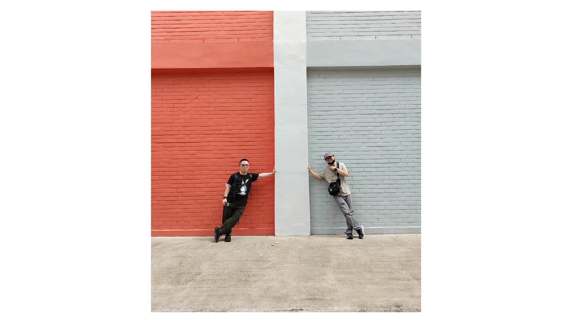 Image description: Enoch says he discovered his love of photography after discovering that he could use phone images as a way of making it easier to communicate with his parents and the wider world. The contrasting colors of the walls in his image appealed to him and he asked his friends to pose to add to the composition.