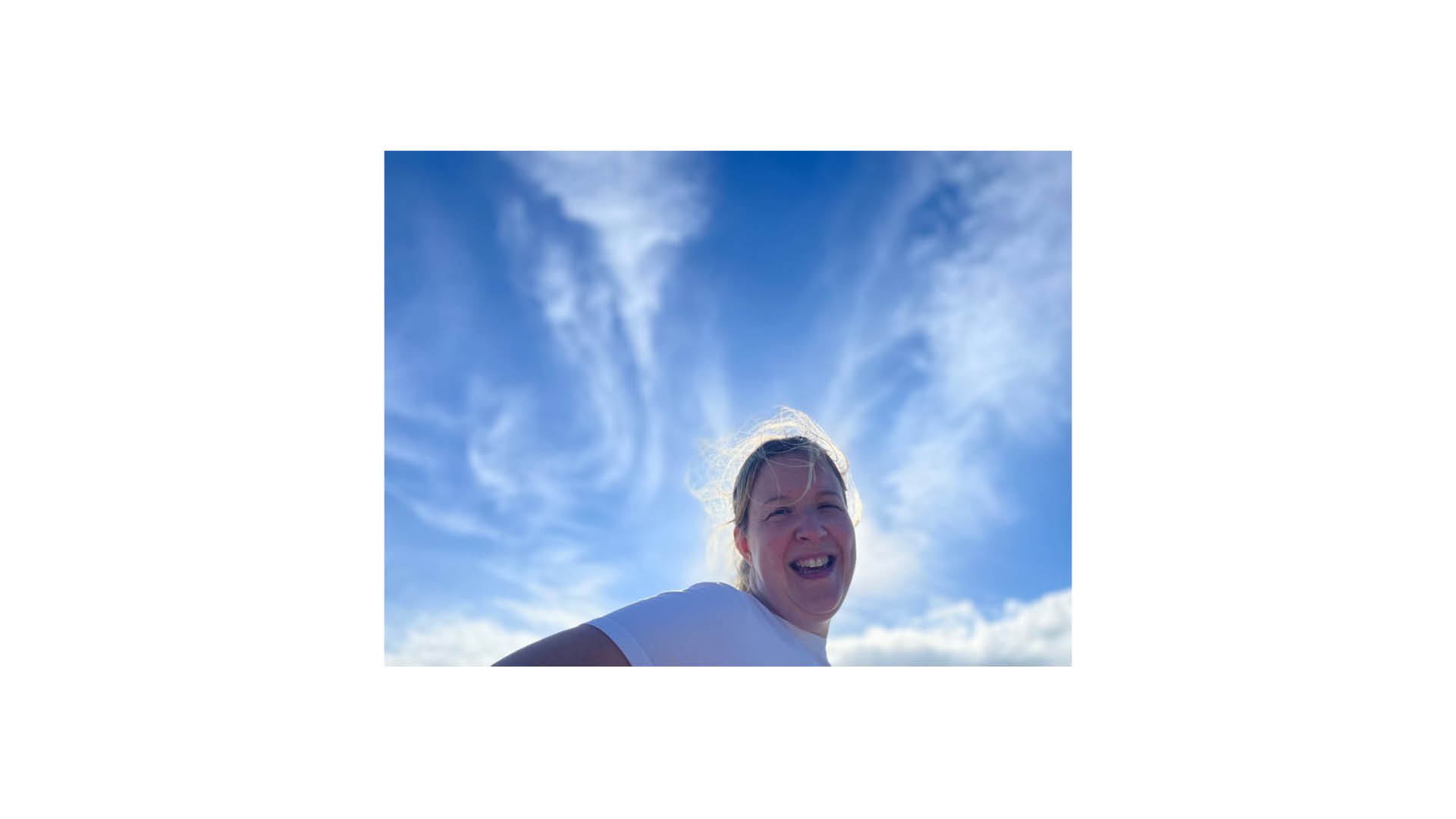 Image description: eight-year-old Mabel captured her mum Elaine's smiling, windswept face on a sunny day on Rossnowlagh Beach in County Donegal because, she says, 'the beach is our favourite happy place.'