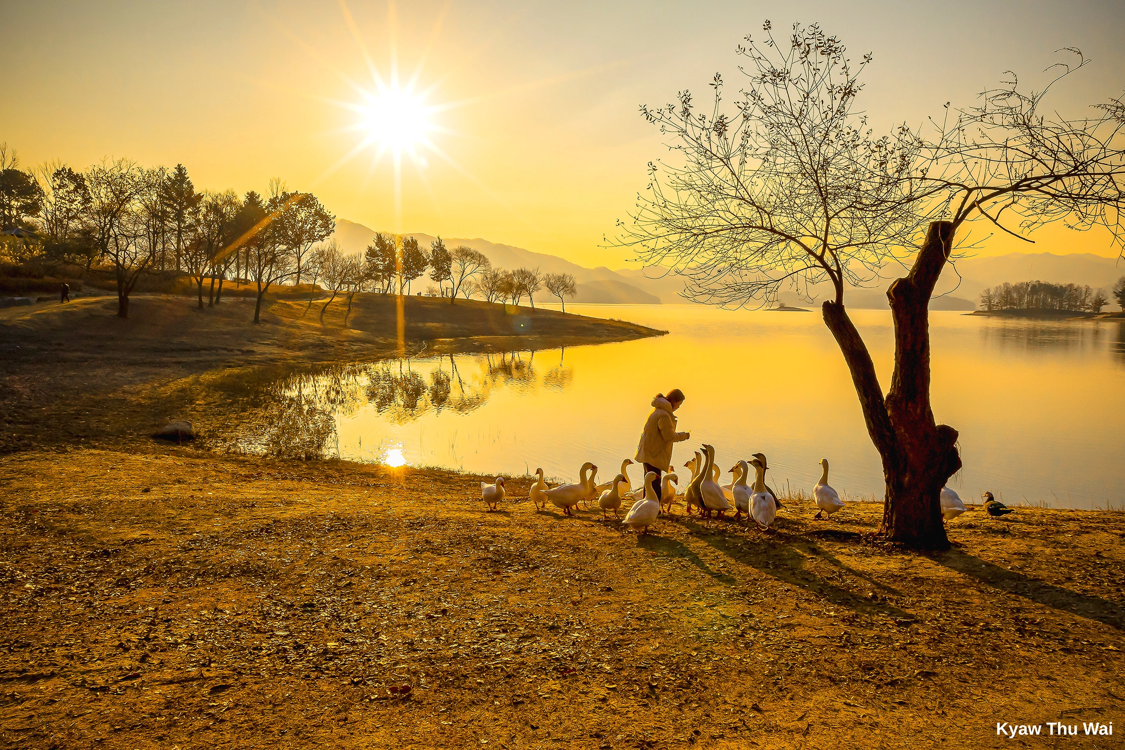 Beneath the sun’s breathtaking, golden embrace, a silent covenant is made. This scene is a pure testament to unspoken, healing warmth – the profound connection between the soul offering sustenance and the trusting hearts receiving it.