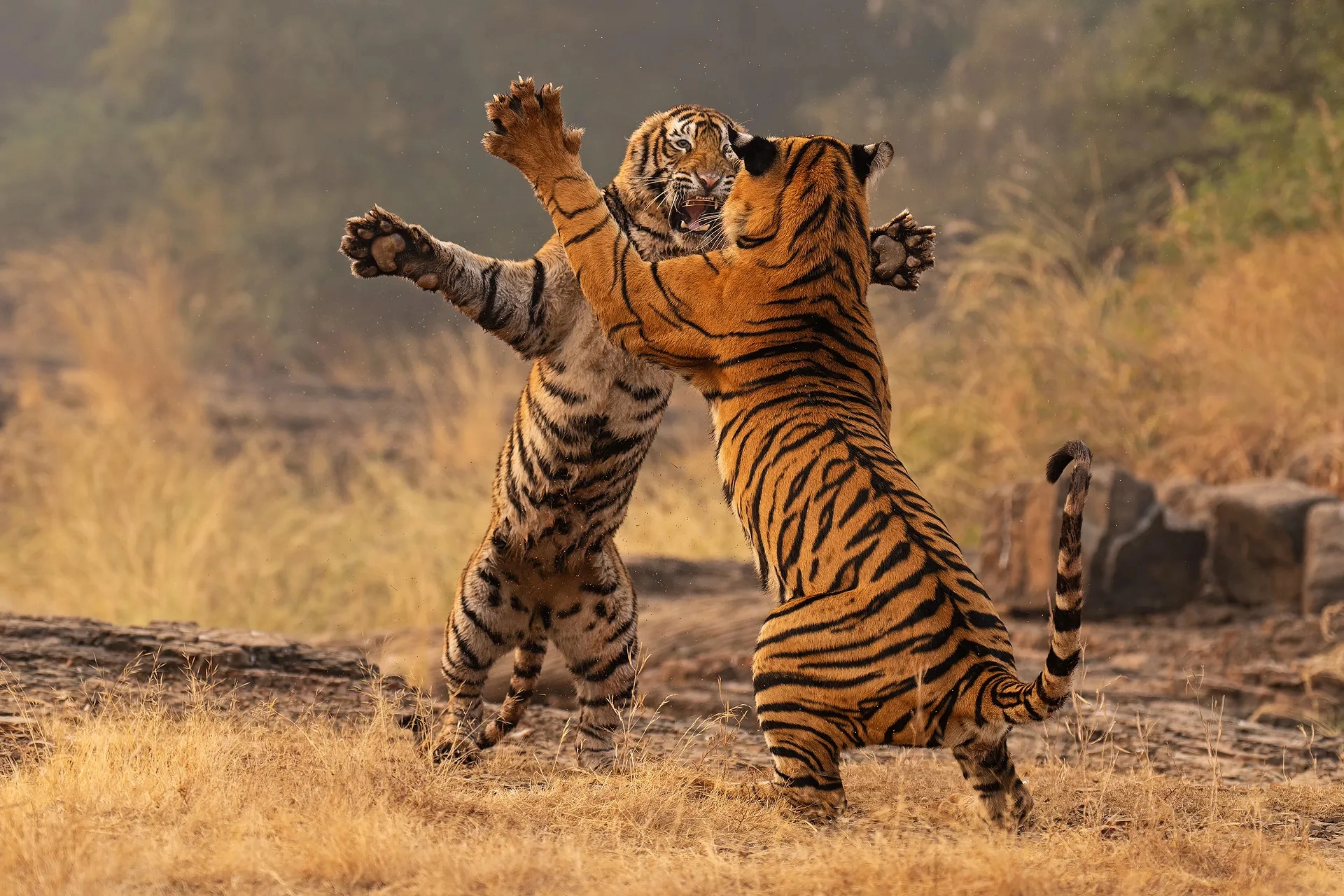 These young tigers exploded into a split-second fight – and this award-winning image captures the clash