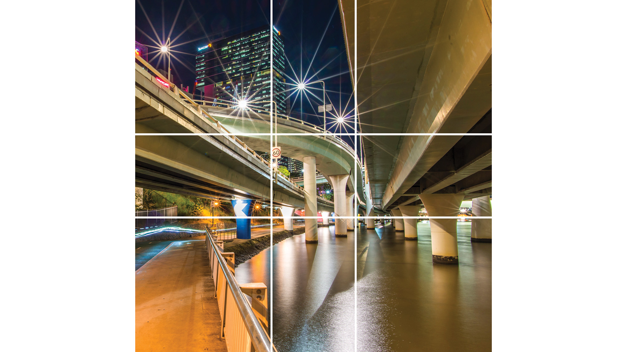 As with the rule of thirds, you can place the focal point of the image on any of the converging points on the aforementioned grid, or roughly around the center of the spiral. The spiral itself can be flipped horizontally or vertically, and you can use the curvature as a guide for leading the eye towards the center of the spiral via objects or leading lines within the image.