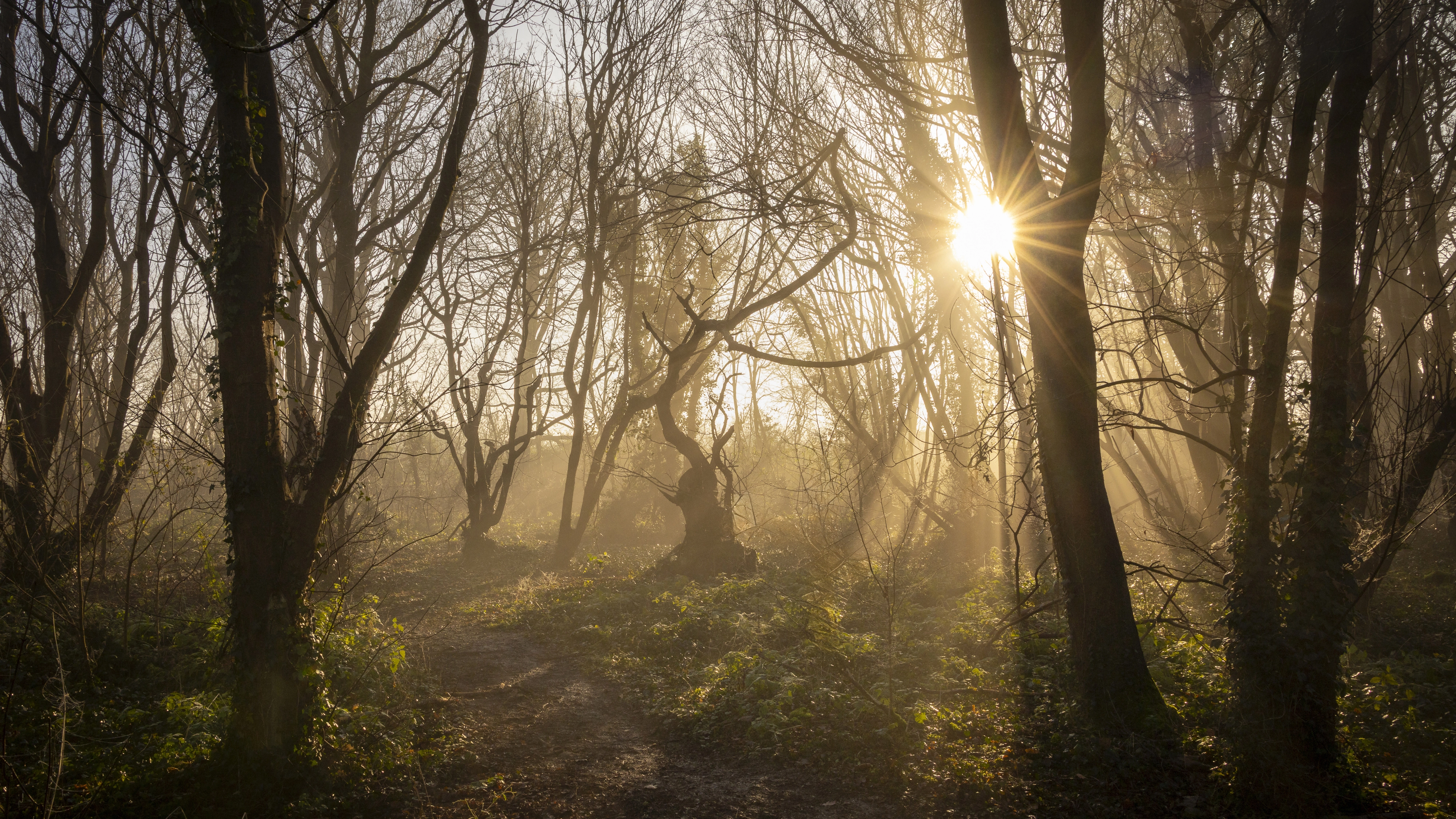 I’d done a recce at this forest location the day before when it was cloudy, using my PhotoPIlls app for the position of the rising sun, in relation to the trees, and worked out the best spot, the low angle, and wide 24mm focal length for the best composition.