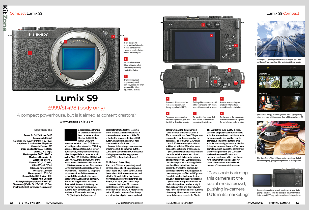 November's camera and accessory reviews include a full test of the Lumix S9, a full-frame camera that's pitched at content creators. But how compelling is its offering for stills photographers? Turn to page 106 to find out.