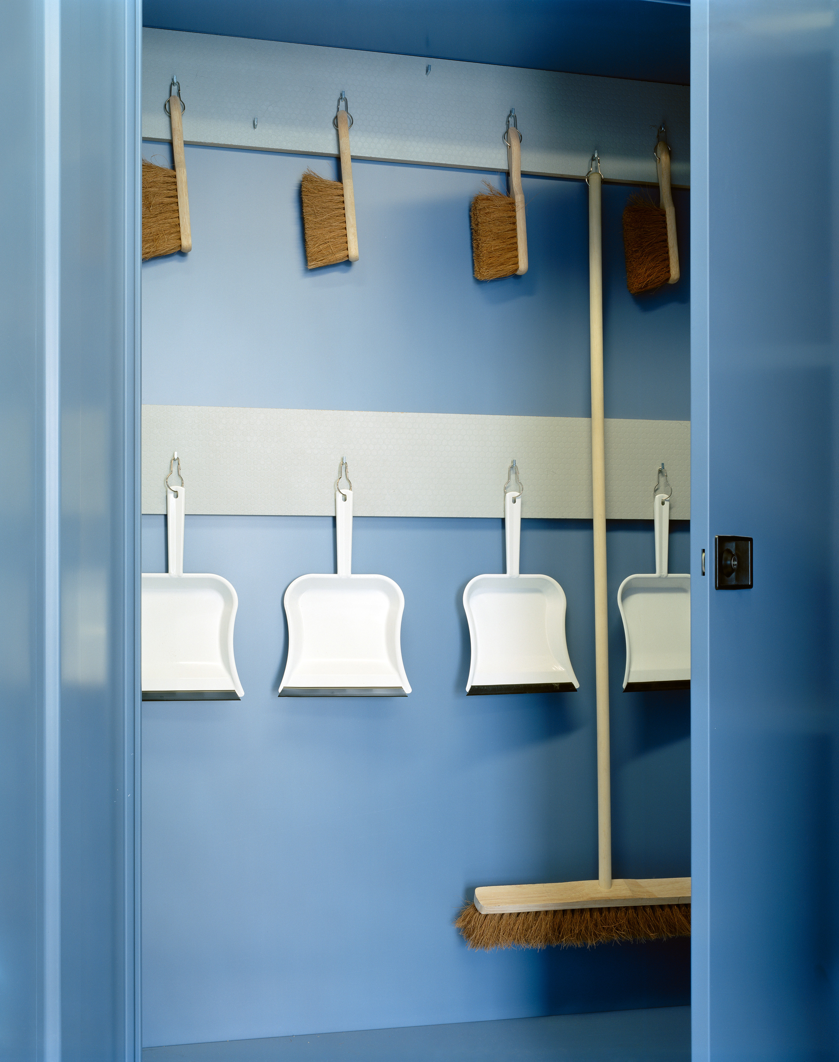 That hole in a shoe, those white gloves hung to dry, the painstakingly arranged cupboard of brooms – details that reveal his dry humour – exist outside their original industrial context. They become elusive and poetic. You can't tell what was commercial and what wasn't, because there's no meaningful distinction.