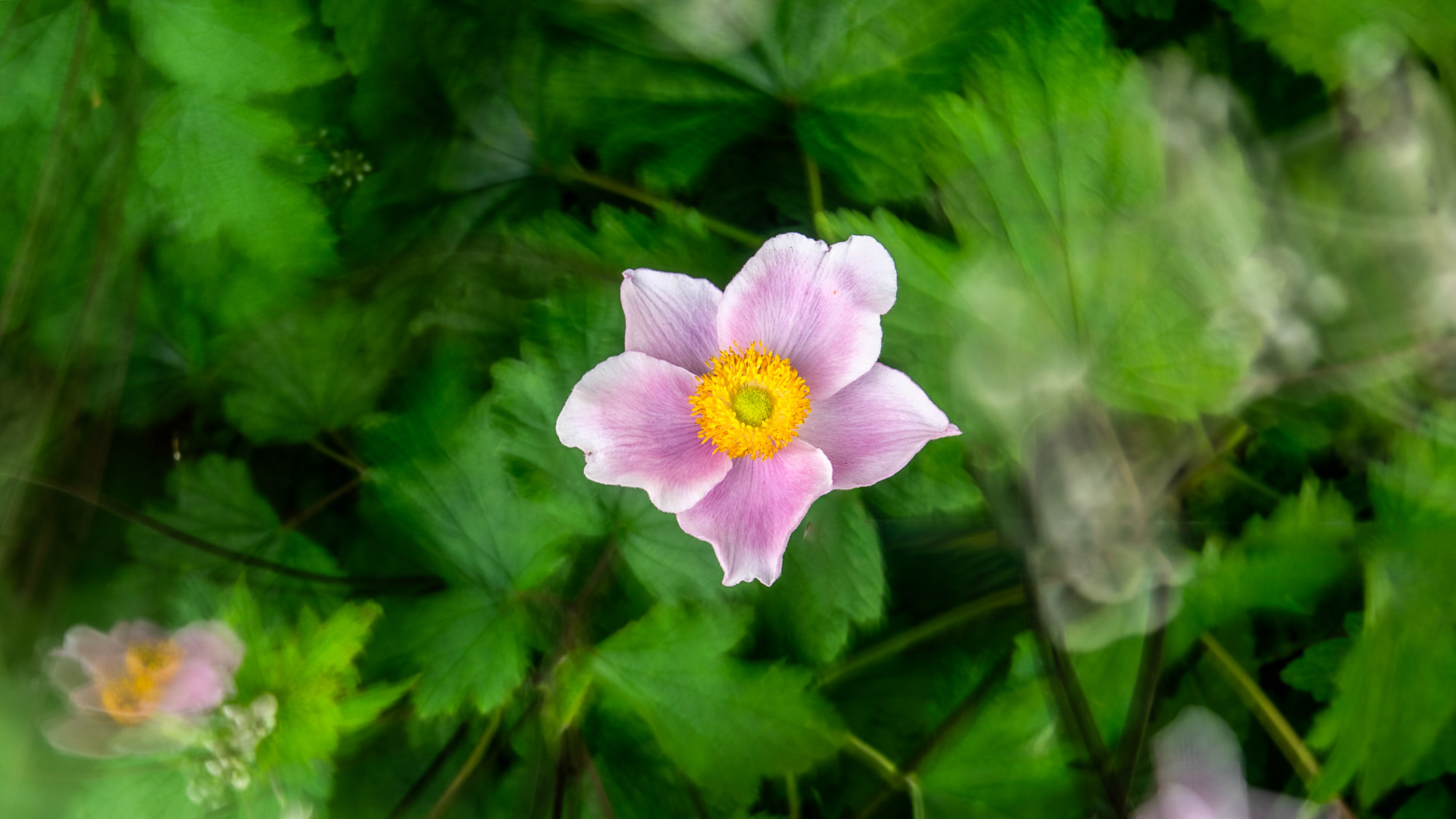 We can use the leaf blower to direct a gust of wind in the places where the scene needs it, creating movement in the plants and flowers that – coupled with our long exposure – results in a distinctive blur. Alongside this, to keep a single bloom perfectly sharp, we can fashion a clamp to secure it in place. This way, we get a lovely combination of blurry and sharp detail. It’s a fun technique to try, as you never know quite how the blurred areas will turn out.