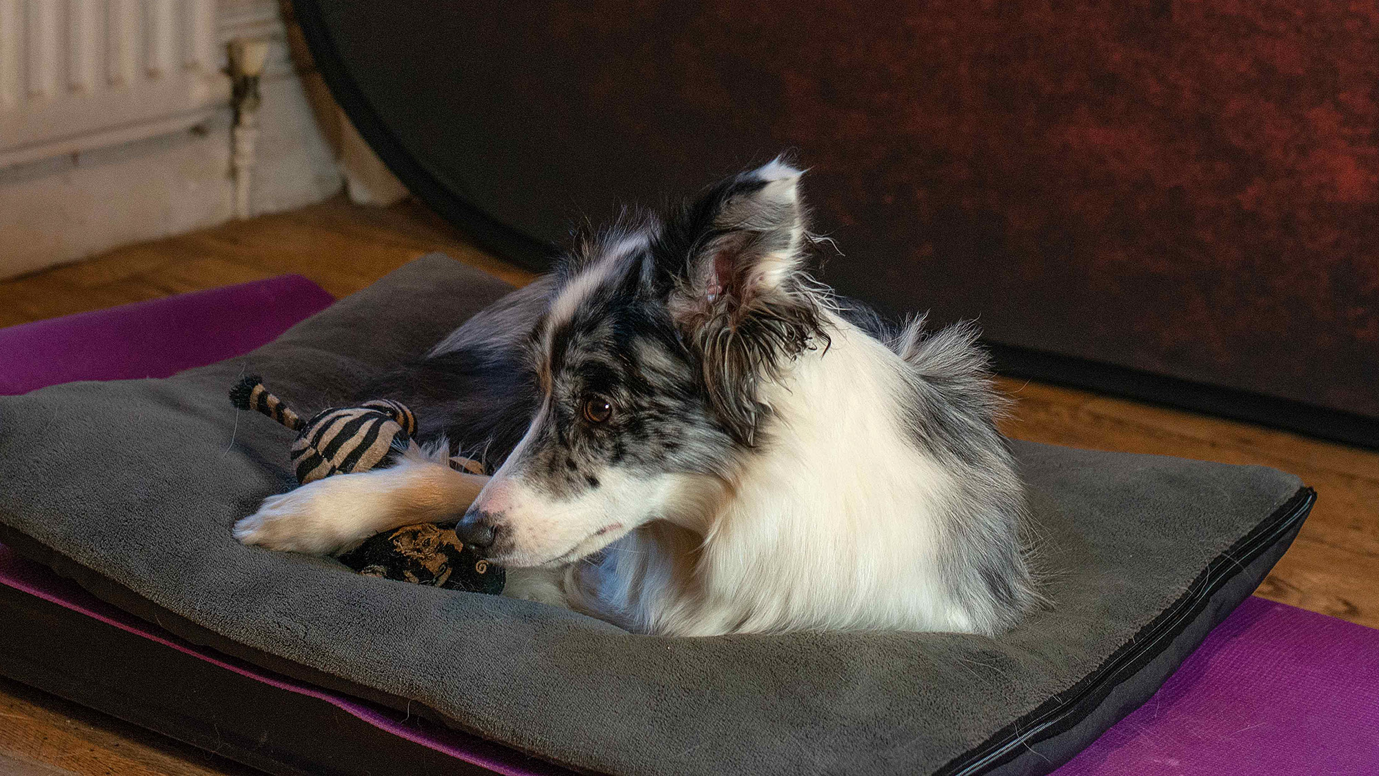 For my portrait session I enlisted the help of Fenwick, the border collie. Once she realized her bed was in the middle of the studio and was plied with plenty of treats, she happily sat in front of the camera while I tweaked my lights and camera settings. Here’s how I got on…