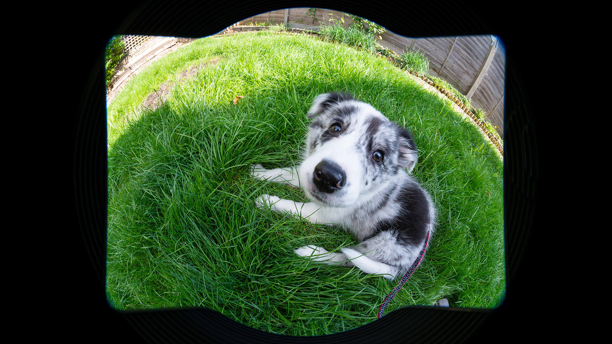 To emphasize the extreme barrel distortion, get close to your subject. Small subjects, like my puppy, may require you to get close to the lens’ 0.5ft minimum focus distance. On more than one occasion, the excitable pup licked the front element – so a lens cloth is essential!