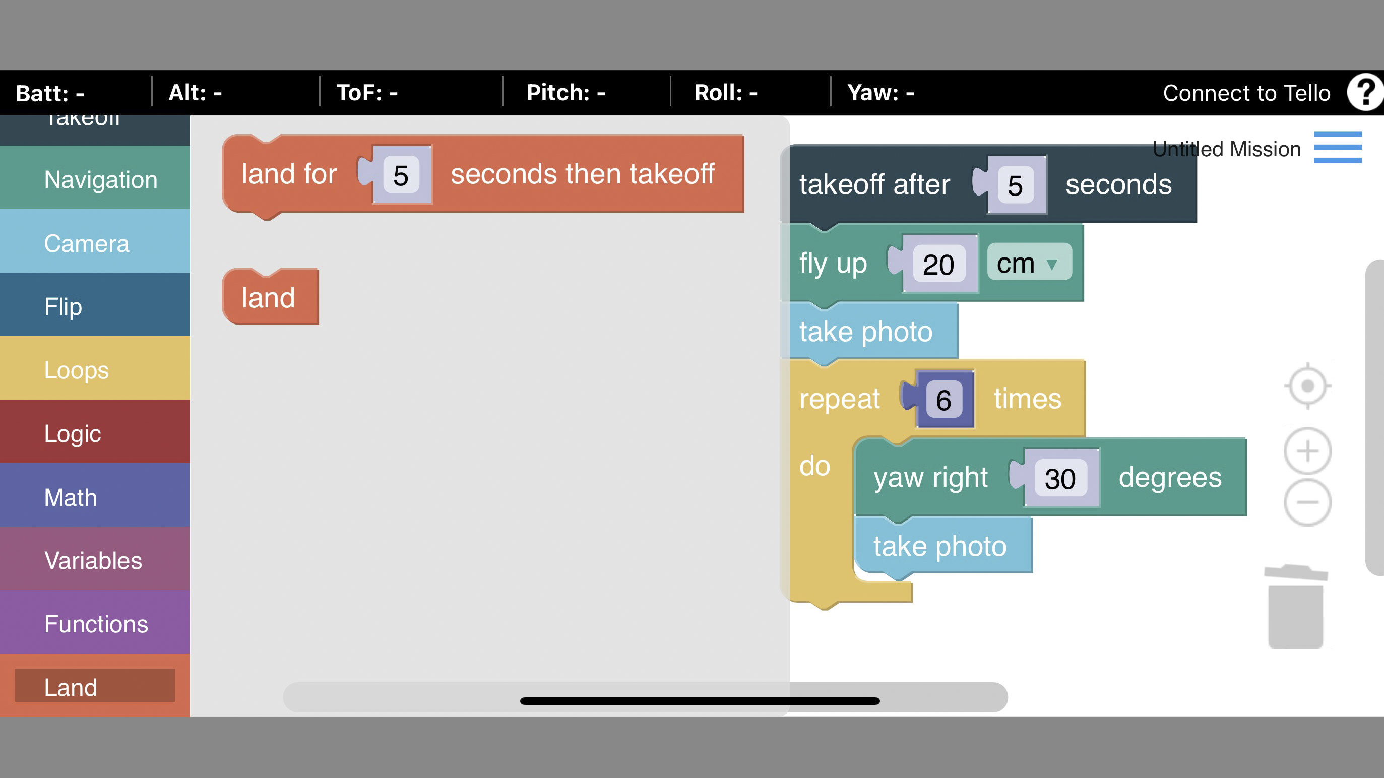Much of what can be done with Scratch can also be achieved with Drone Blocks, an app for iOS, Android, and Chrome, which fits on a phone screen but might work better on a tablet. It allows simple drag-and-drop programming too but has the simplicity you’d expect of an app store install.