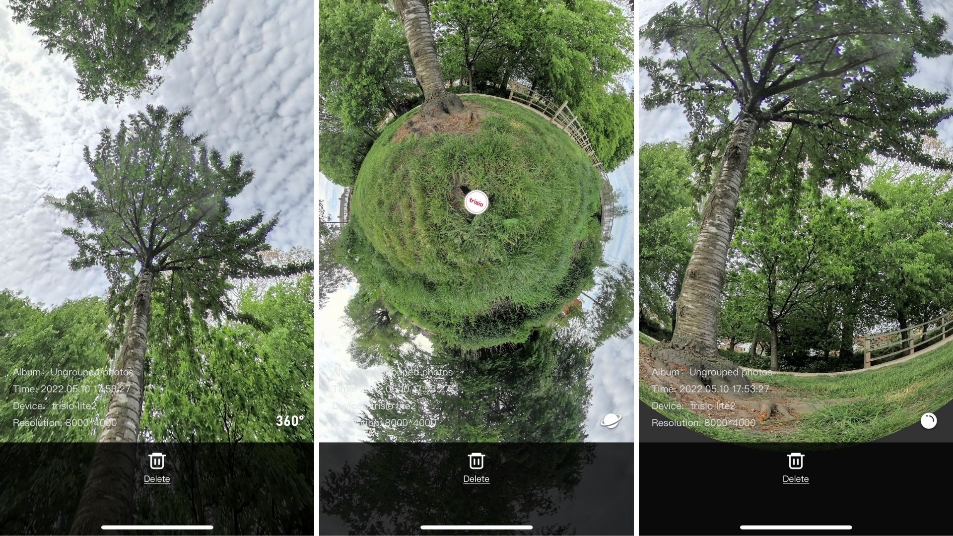 The only issue is that you do have to use the Trisio360Camera smartphone app to access and share your 360º photos. In practice the app is rather limited, allowing you to create folders and export them to your smartphone’s camera roll in 8000 x 4000 2:1 aspect ratio. There are no in-app options to create ‘little planet’ or globe-style images before exporting or any editing options; the Trisio Lite2 produces plain 360º JPEGs for uploading to other platforms that will let you scan around in a ‘virtual tour’ manner, such as Facebook and Kuula (a good alternative to Matterport).