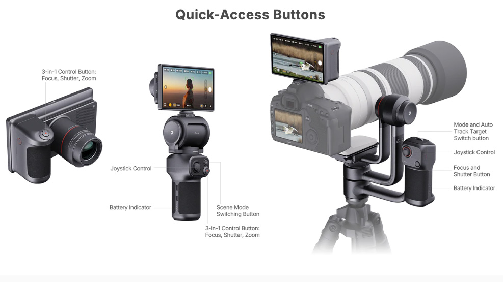 Another day, another AI camera. But the RocX doesn't just look different; it looks like it can also be used in conjunction with a mirrorless camera or traditional DSLR. Billed as the “World’s First AI-powered Distant View Camera,” it’s essentially a compact camera perched atop a joystick-controlled mount (RocX Handle), with the option for a larger gimbal (RocX Gimbal).