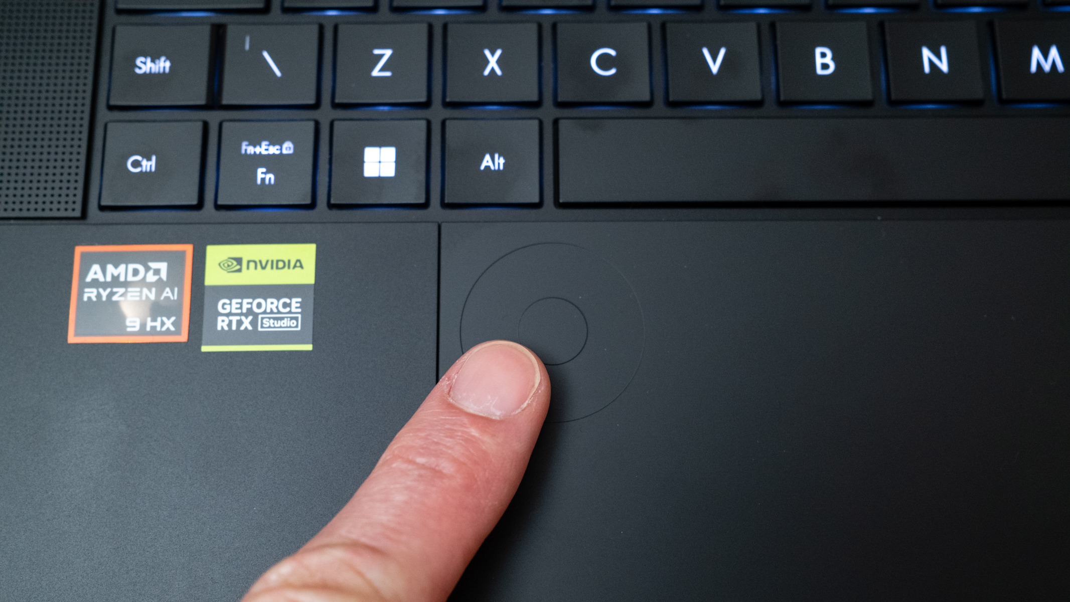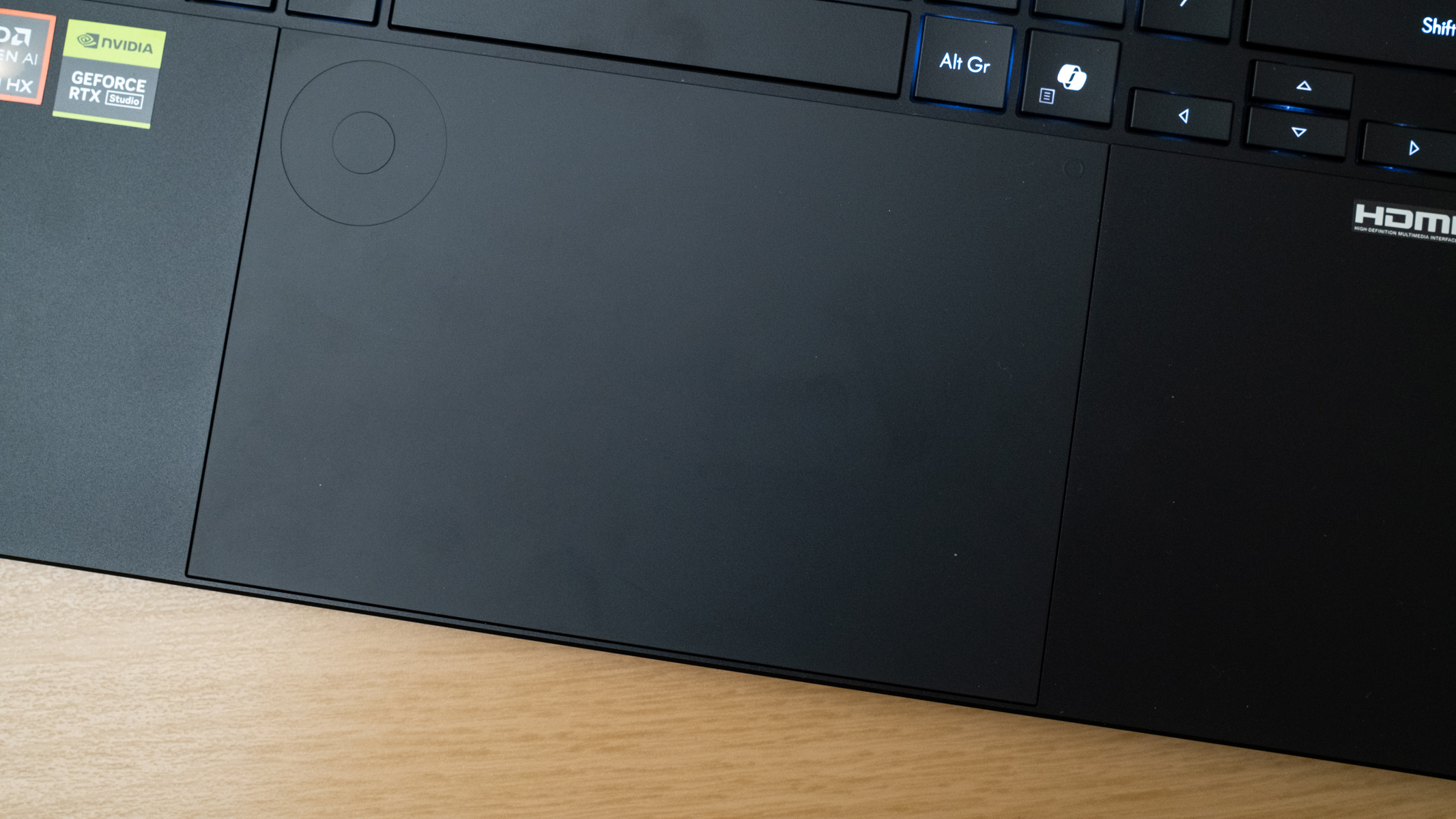 As a notebook aimed at creatives, there’s the Asus Dial situated on the trackpad. This provides a level of control similar to control consoles. The Asus Dial can be configured with the desired functions, but these are limited to a list of options rather than allowing you to assign any control you wish. What’s available is useful, and it’s a useful feature overall. The Dial can also be switched on and off as required, so it doesn’t get in the way when you don’t need it.