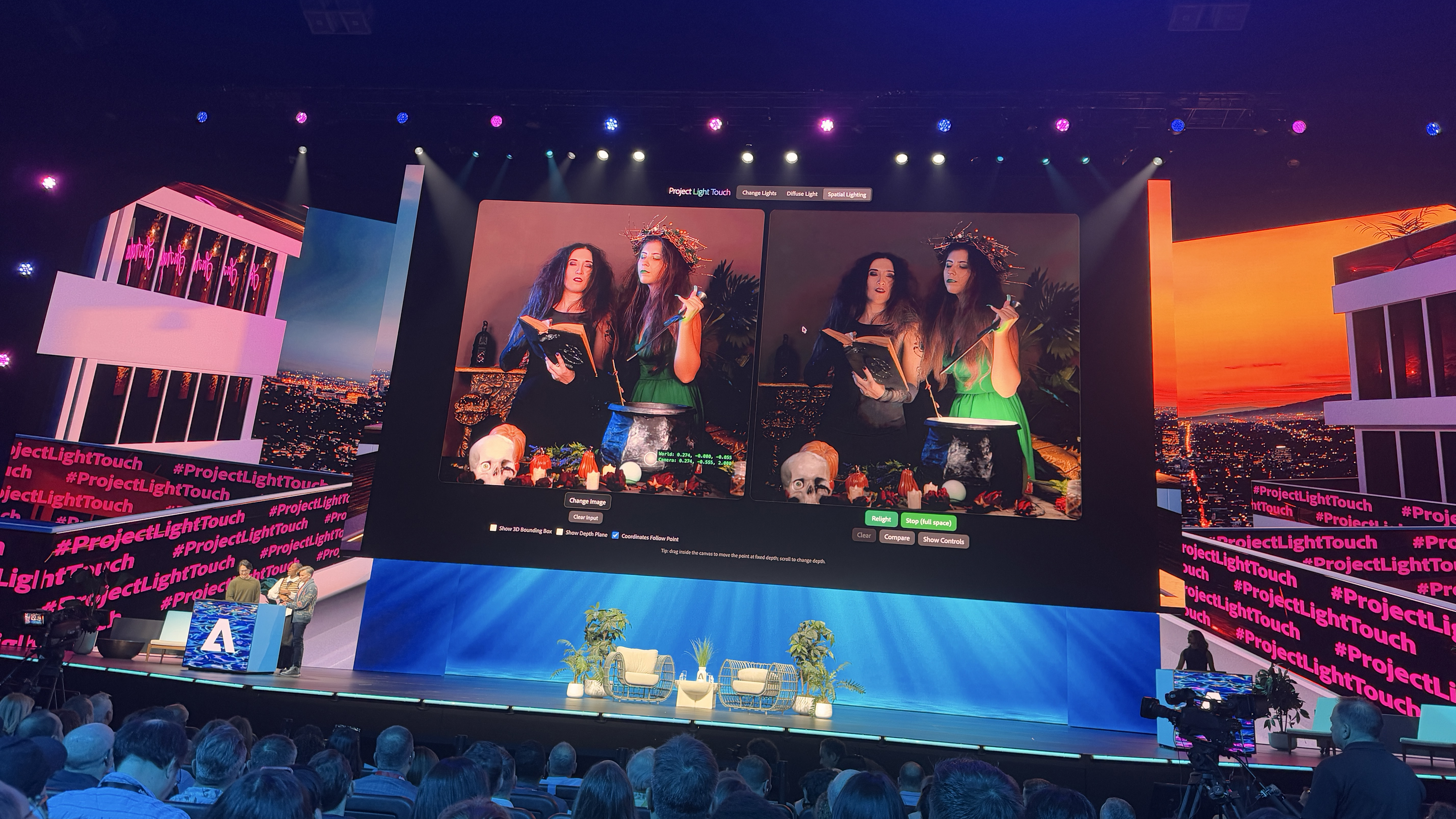 But if the crowd’s cheers are any indication, the most impressive part of Project Light Touch is the Spatial Lighting Mode. In this mode, editors have a 3D workspace, and they can drag a light around the space. Upload a photo, and then drag around the light in the 3D model to alter where the light is in the photo.