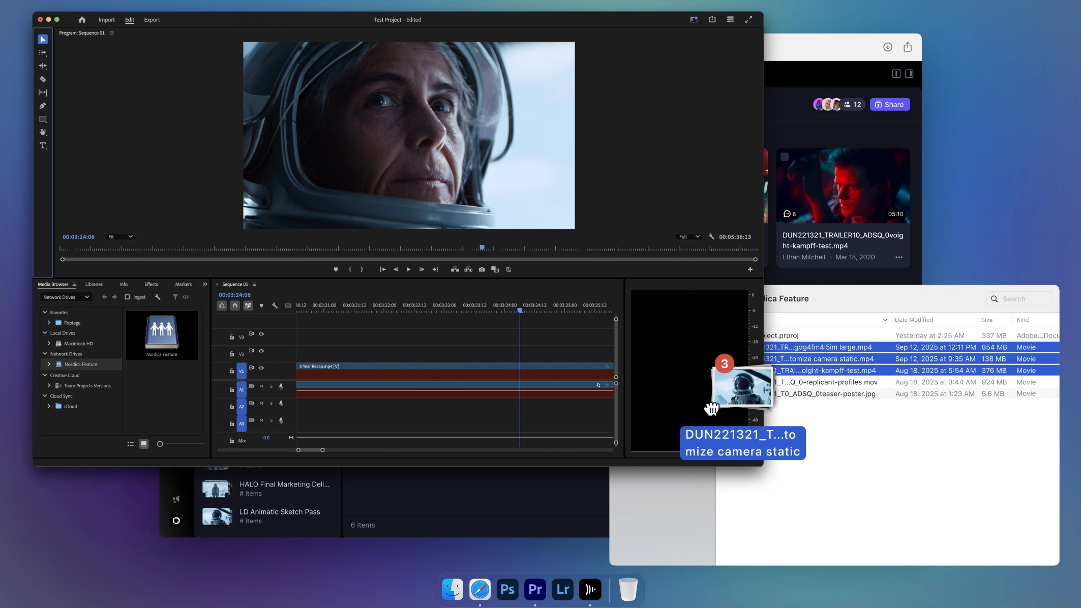 Frame.io Drive similarly “streams” media with Mounted Drive tech to teams using Premiere Pro, Photoshop, After Effects and other tools by chunking that data and sending only what’s needed at the time.