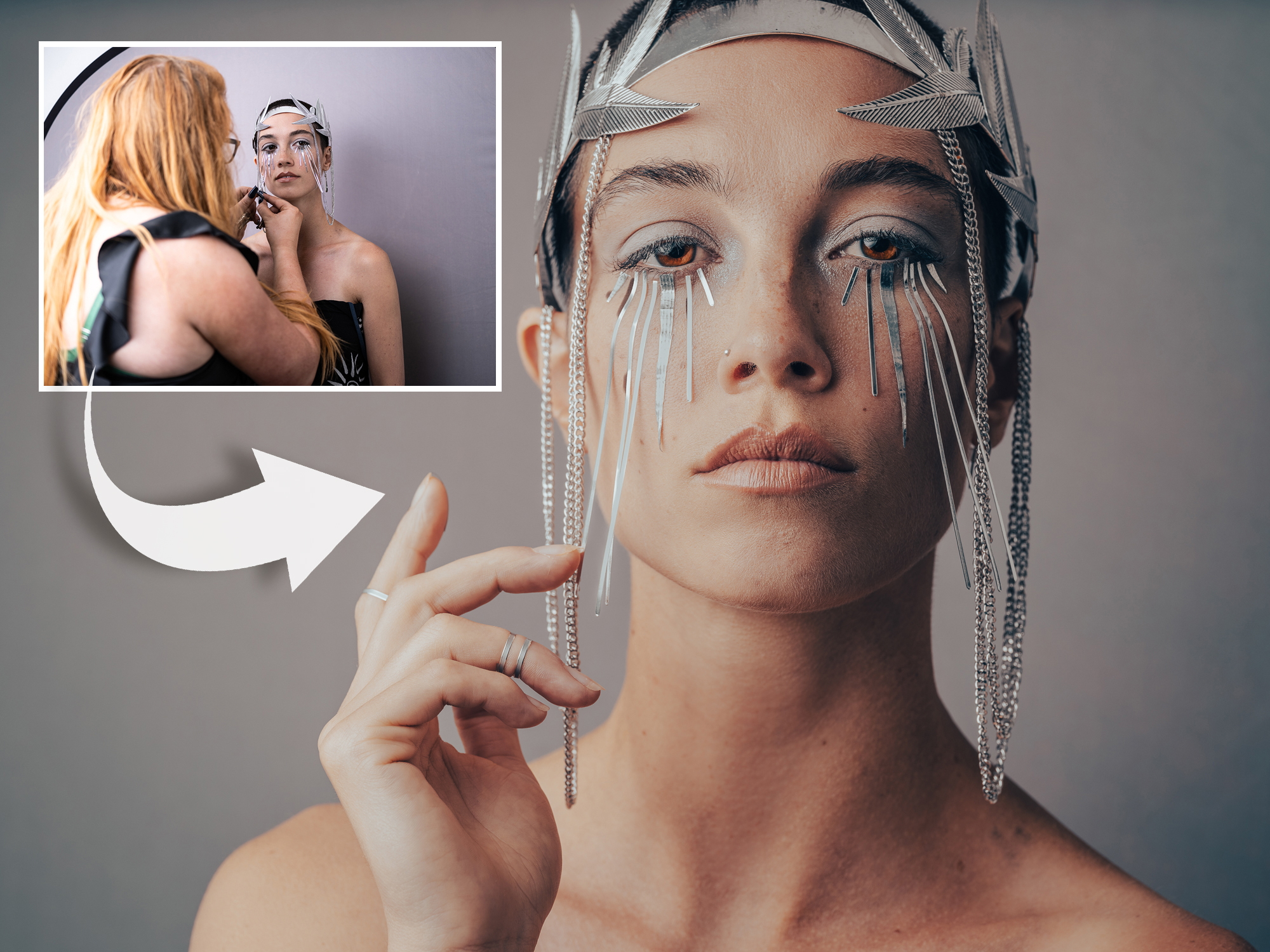 A great team is the key to a great shoot. Have a space allocated for the hair and make-up team to work with your model in comfort. When you shoot in a studio space with a plain background, everything in the preparation will need to be perfect. These elements are just as important as lighting and camera settings.