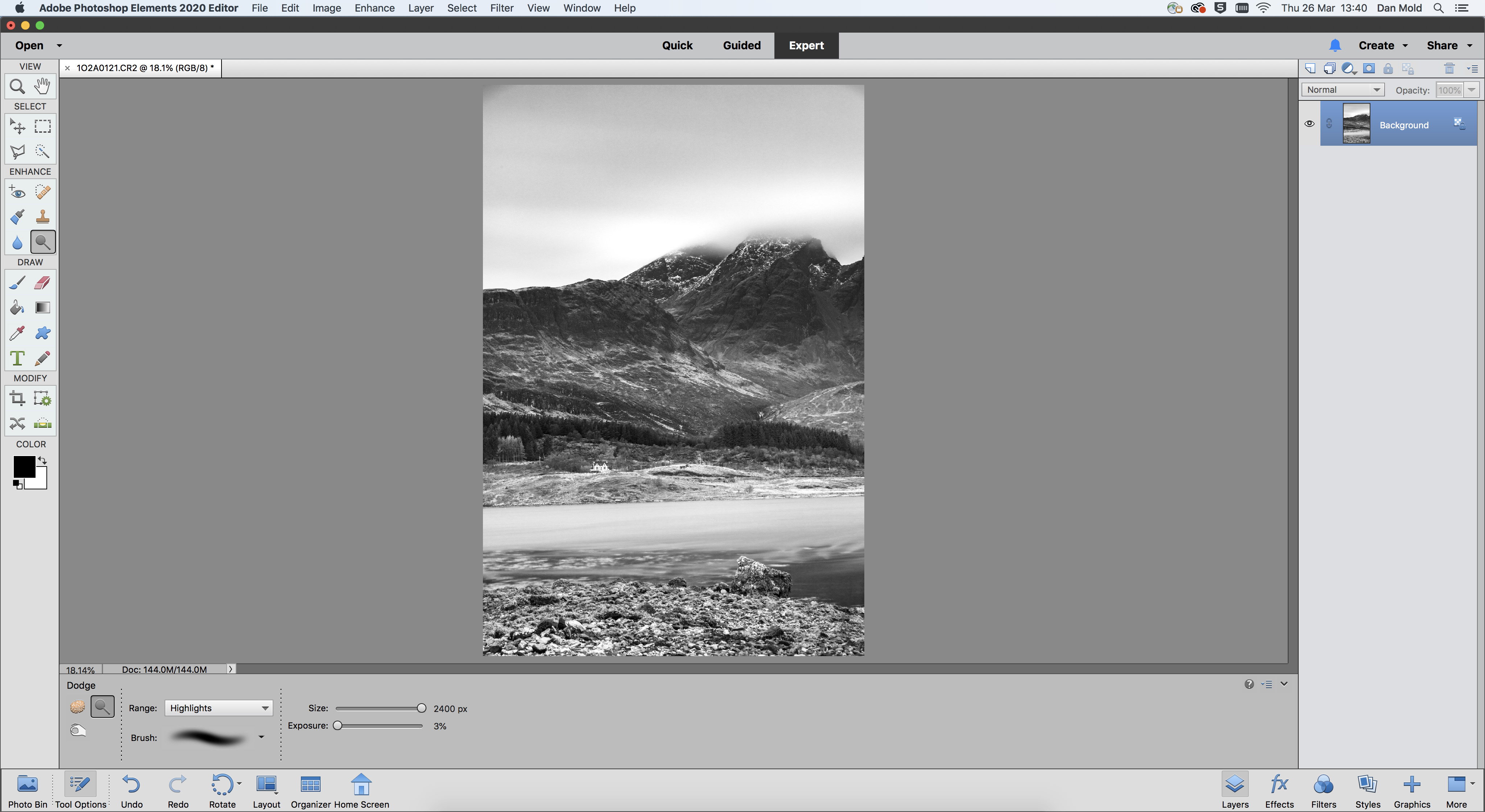 Then we’ll take the picture into Elements’ Expert mode to do some dodging and burning – a classic technique that's employed to darken and lighten specific areas of your shot.
