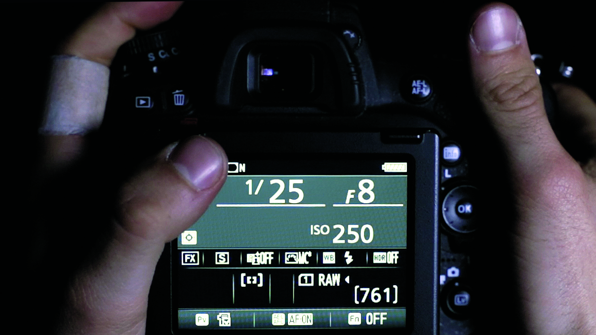 We set the camera to f/8 in Aperture-priority mode, then adjusted our sensitivity to ISO 250, so that we had a shutter speed below 1/200sec (the sync speed of the flash). We then slowed it further, to 1/25sec, using exposure compensation, to let in more of the ambient light.